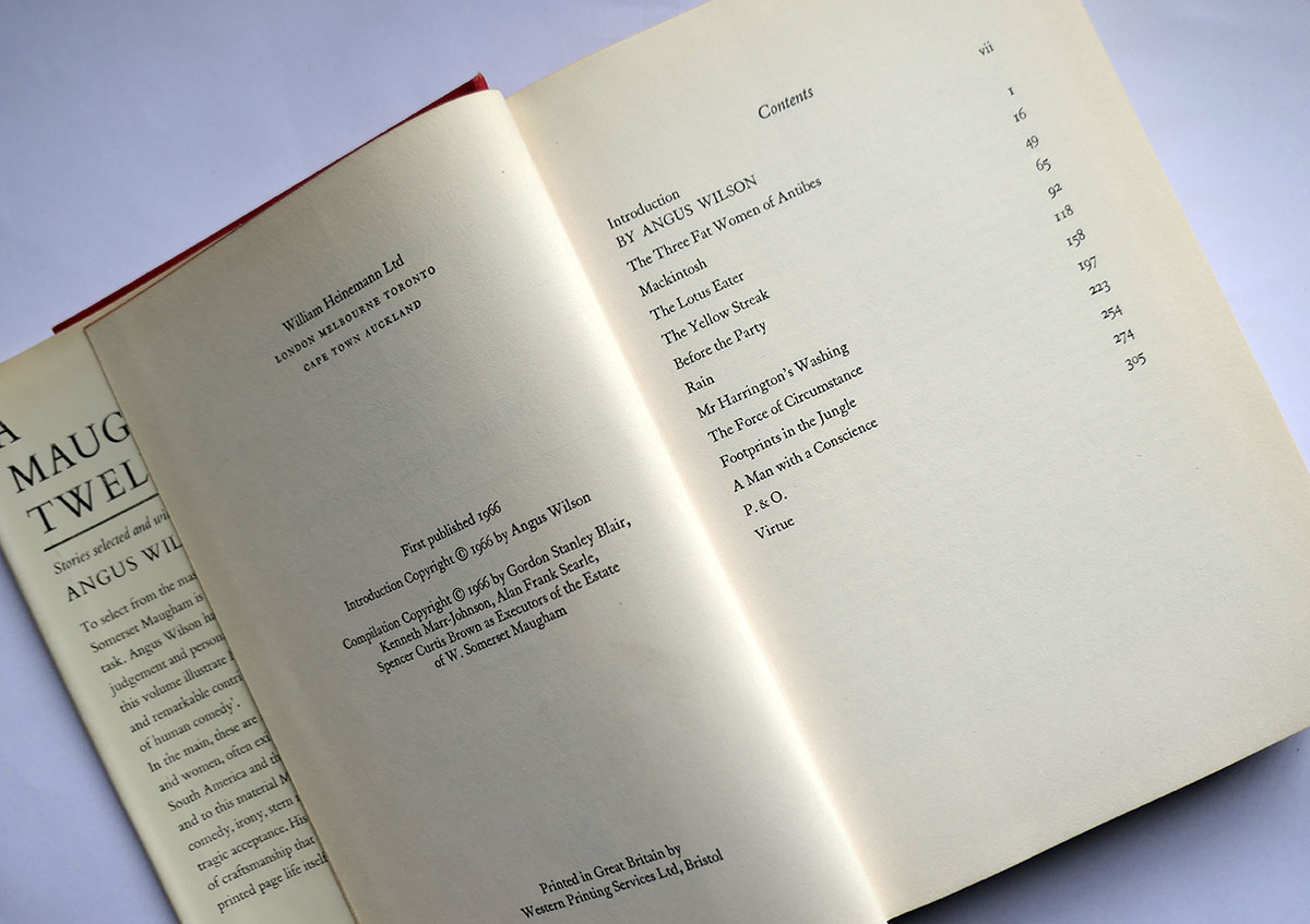 With the Christian undertones of this collection, one feels the hand of the author of its introduction almost as much as that of Somerset Maugham himself. A.N. Wilson (perhaps he wished it was his own collection of short stories being published) opens his introduction with the pithy line “Somerset Maugham wrote at one time or another more than one hundred short stories; none is less than highly competent.” Half the dozen stories here are set in Malaysia, and for this we must thank Mr. Wilson (who personally selected them), for Maugham was the master of the tale of the dispossessed expat slowly going mad in a far flung corner of the empire. This is the first edition, published in 1966, and is very good condition.