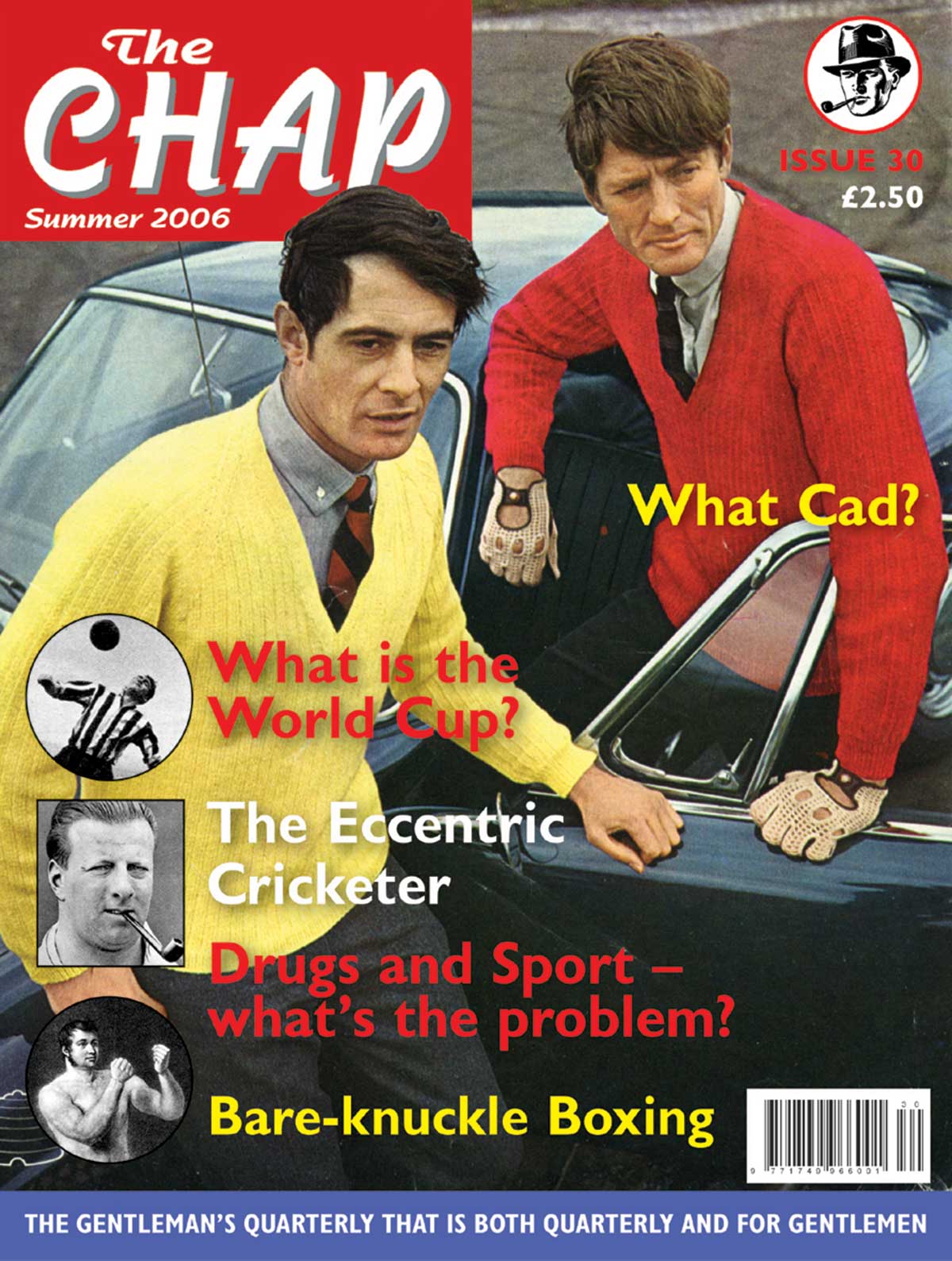 Issue 30 of The Chap was published in Summer 2006, and featured the one and only feature ever published in this magazine by Gawain Douglas, grandson of Lord Alfred ‘Bosie’ Douglas, Oscar Wilde’s lover. Earl Okin also penned his first piece for us, a paean to the mighty Rover P4. Kipper and Grape advised on watching the soccer World Cup from one’s chaise longue, while two reprobates in Soho engaged in a violent game of bar billiards. Eccentric cricketers graced the sports pages, pipes were lauded by Professor Pinkerton and the comic strip adventures of Mordecai Villiers were continued. This is a brand-new, immaculate copy from the Chap’s own archives.