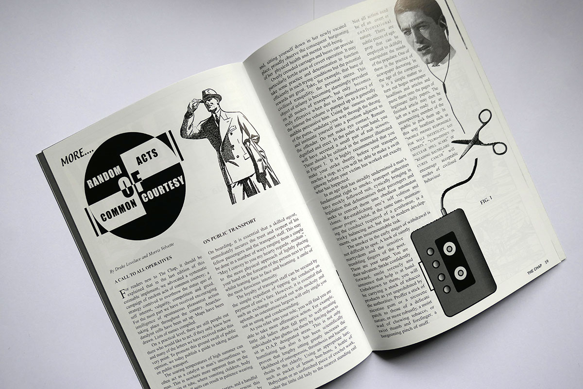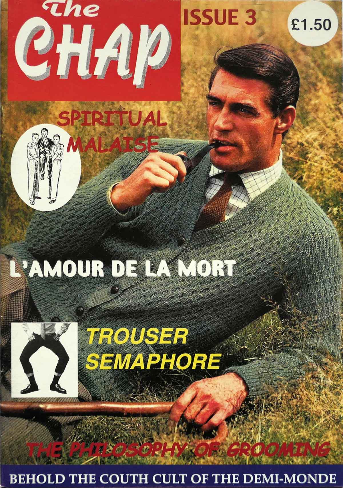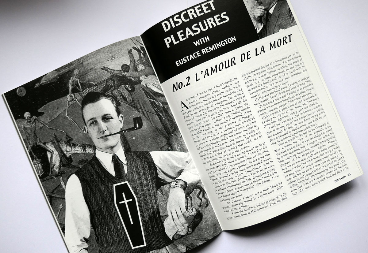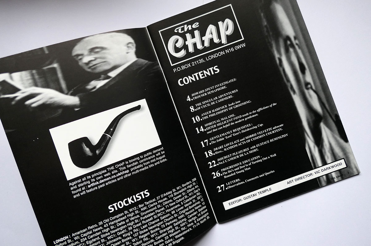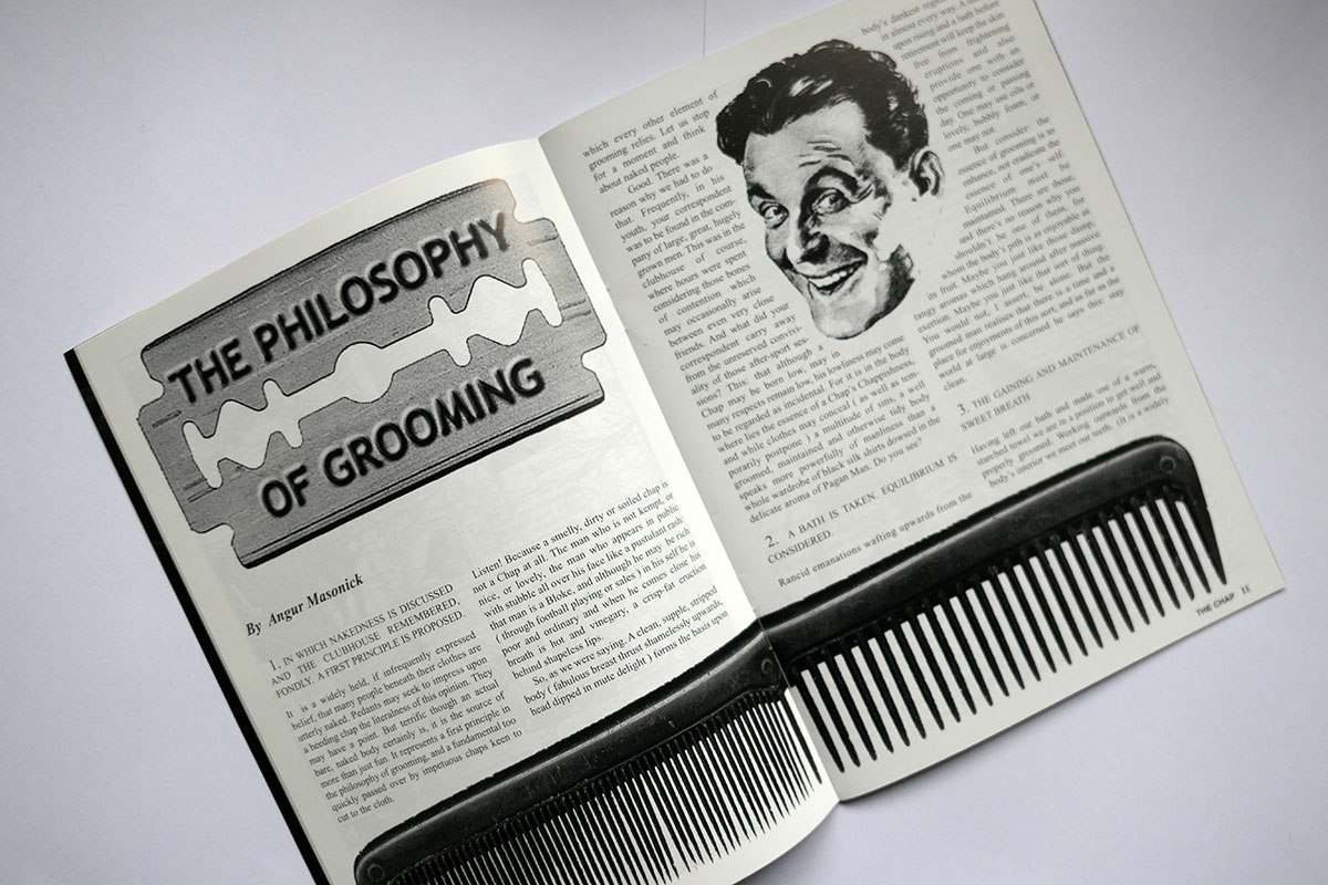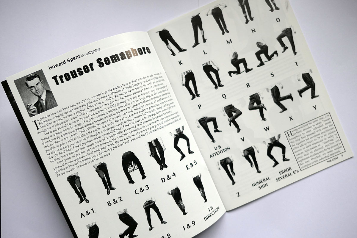 The third edition in The Chap’s very first quarterly cycle launched the art of Trouser Semaphore on the public for the very first time. This ancient gentlemanly code of communication went on to become a stalwart display at frequent public appearances by Messrs Temple & Darkwood. Other contents in this issue include L’Amour de la Mort – a celebration of death – Sister Millicent Fond’s advice on treating Spiritual Malaise, Drake Lovelace and Morris Velvette’s second instalment of Random Acts of Common Courtesy, the Do’s and Don’ts of Education, The Philosophy of Grooming, and the Singular Adventures of Cecil de Cashmere. This is a brand-new, unread copy from the Chap’s own archive.