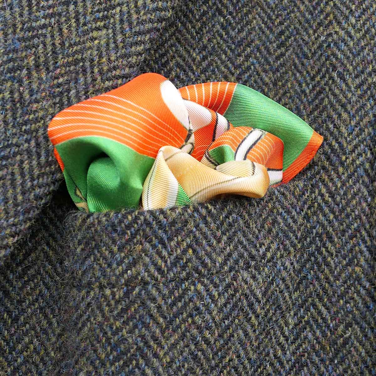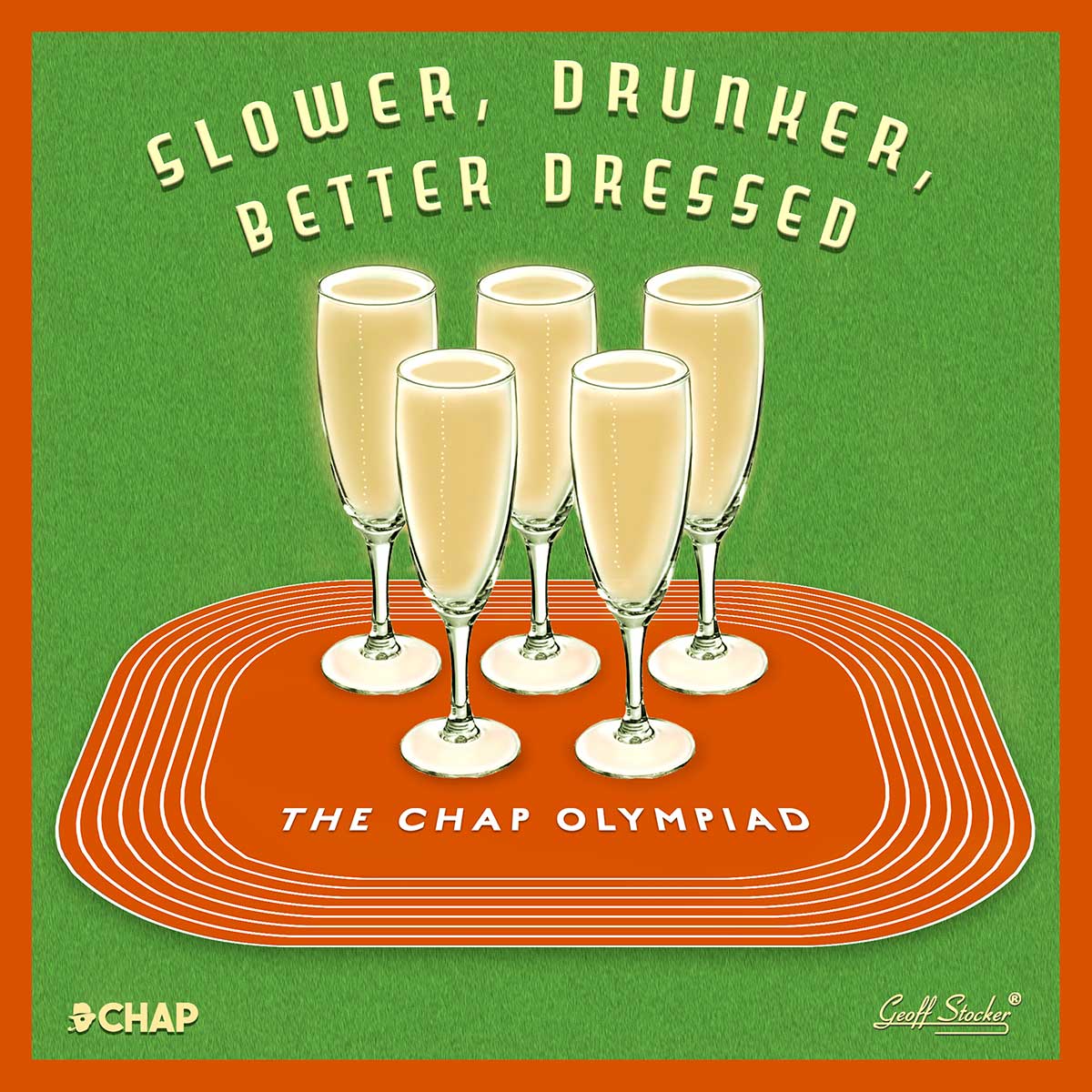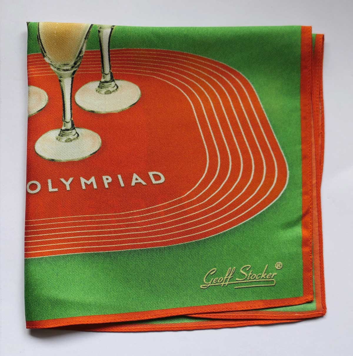 To mark the publication of our history of The Chap Olympiad, Slower, Drunker, Better Dressed, Geoff Stocker has designed this commemorative pocket square, whose brimming champagne flutes deftly mimic the Olympic rings on an athletic track that would, ironically, have proved too exhausting for the Chap Olympians, who had enough trouble wafting along a ten-metre track made of Astroturf. The design folds cleverly into the breast pocket in a multitude of pleasing ways, allowing the wearer to arrange a completely different display every time. The Chap Olympiad Pocket Square measures 30x30cm and is printed on 100% silk.