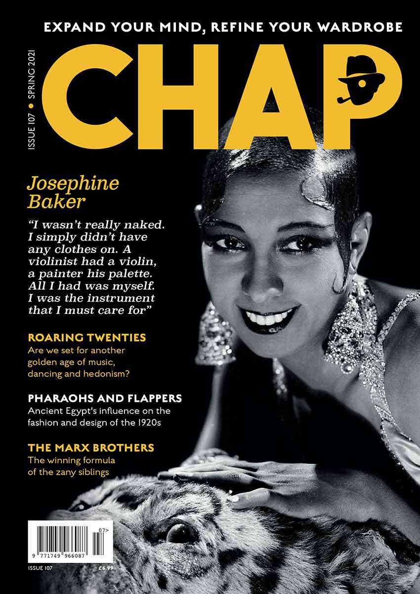 Very rare copy of the Spring 2021 edition, which heralded a new cultural dawn based on that which followed the Spanish flu pandemic of the 1920s, ushering in the Roaring Twenties. Sadly this never came to pass in 21st century Britain, but nevertheless we enjoyed looking at the career of Josephine Baker (with the approval of one of her ‘Rainbow Tribe’ of children), Ancient Egypt’s stylistic influence on the fashion and interiors of the 1920s, the Marx Brothers, The Chap Tarot, Sewing Bee champion Clare Bradley, Anna May Wong, Boheme Sauvage and Japanese menswear brand Adjustable Costume.