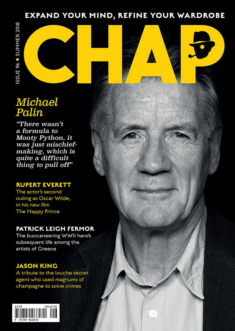CHAP Summer 18 saw the great Michael Palin interviewed by Mr. B The Gentleman Rhymer, with topics such as Monty Python, Ripping Yarns and travel attire being discussed. Rupert Everett’s The Happy Prince is reviewed, along with features on Jason King, Patrick Leigh Fermor, Ocean Liner Chic, Juliette Greco, Sheffield’s Rag Parade, Shooting the Cuffs, Tweed on Film, a Victorian photoshoot in Mr. Fogg’s Residence, Mayfair, plus we meet Jack Carlson of Rowing BLazers.