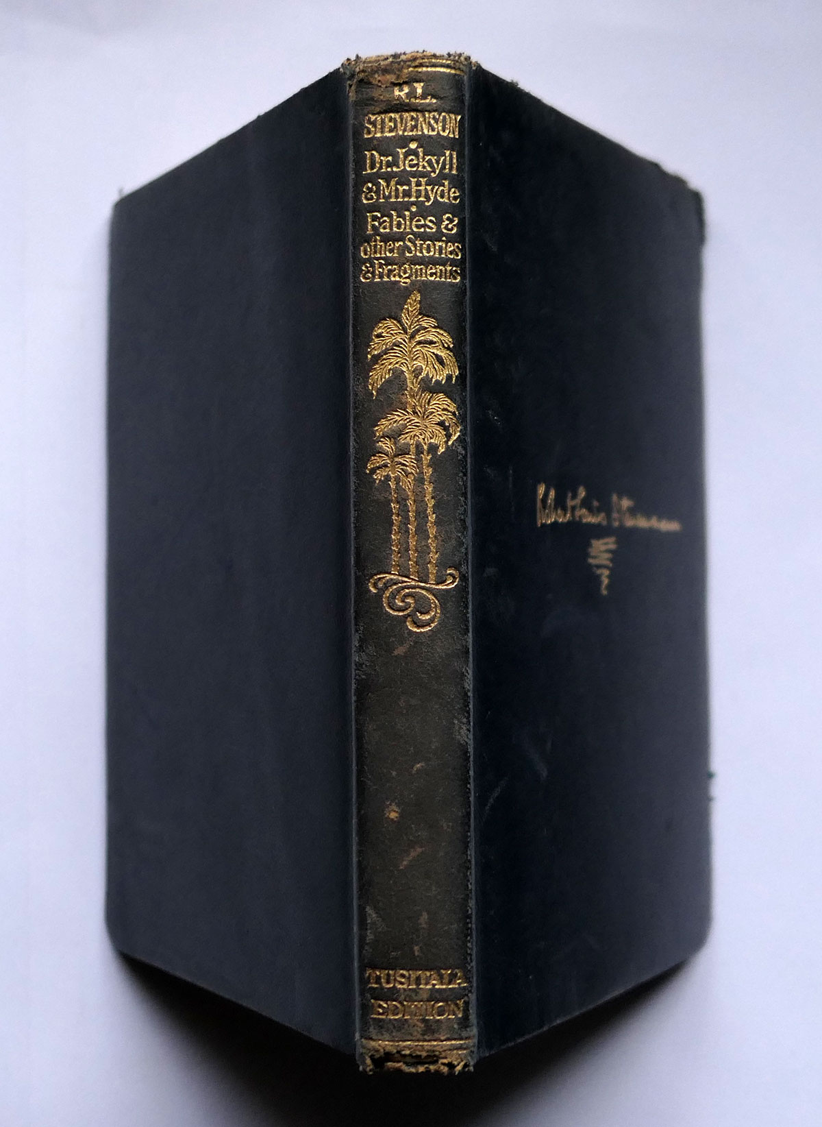 Robert Louis Stevenson’s masterwork of the macabre in a delightful leatherbound edition, part of the Tusitala editions published by William Heinemann in 1924, so named because ‘Tusitala’ was Stevenson’s nickname among the natives of Tahiti, where the author lived until his death. As well as the main title, the book also includes a selection of four short stories and 19 fables by Stevenson. The edition is bound in dark blue leather, with gilt lettering on the cover and the gold embossed logo of the Tusitala editions on the spine, in very good condition for its age.