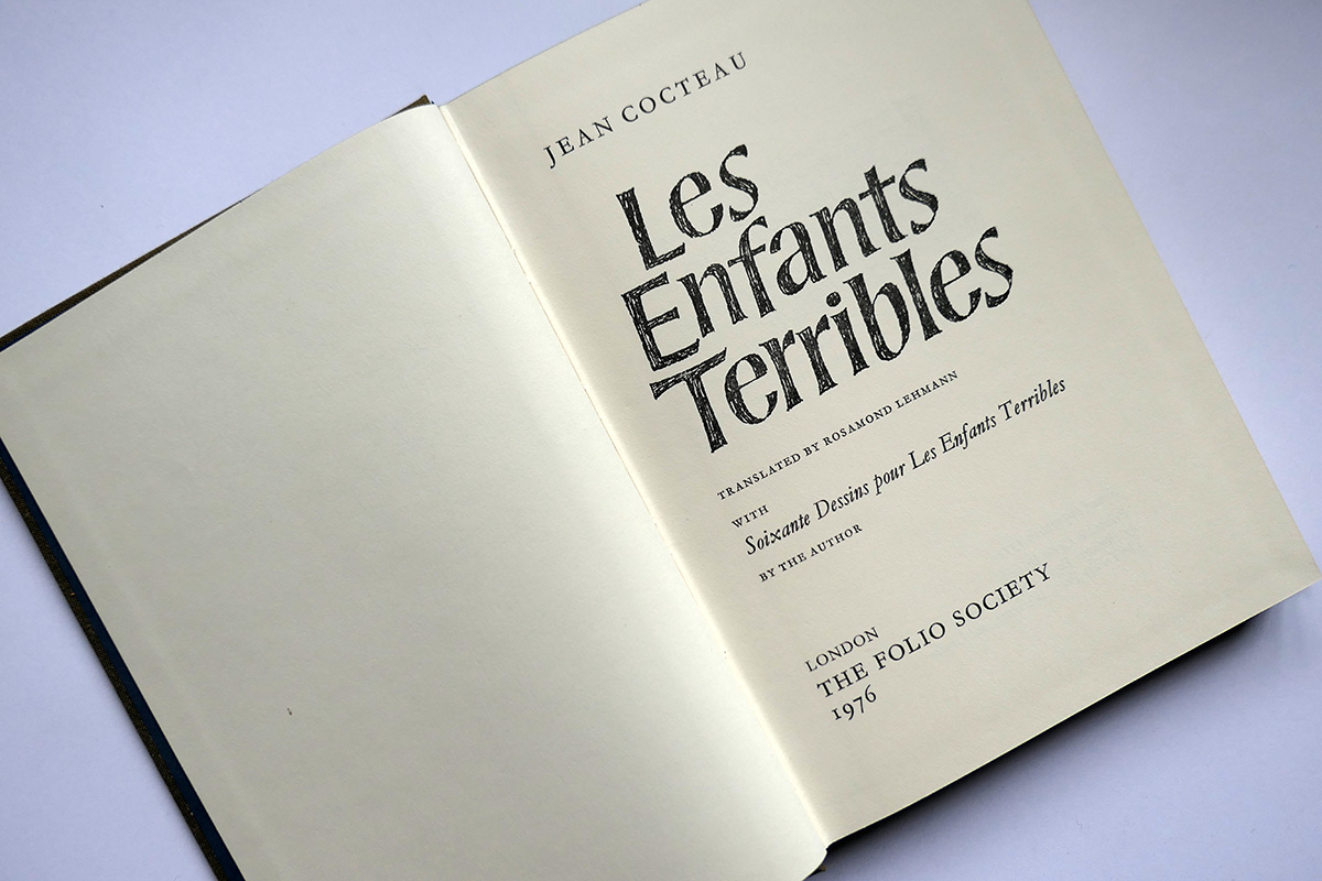 Folio Society edition of Jean Cocteau’s dark, surreal novel. Les Enfants Terribles, written in the space of three weeks in March 1929, is the study of the inviolability of the character of two adolescents, brother and sister Paul and Elisabeth. In 1950 Cocteau prepared the screenplay for a film of this work, and he was also the film’s narrator. Deeply claustrophobic, the work warns of the dangers of choosing to live inside a confected reality. Unsurprisingly it was made into an opera by Philip Glass. This is the 1976 edition in immaculate condition, with the original Folio Society slip case.