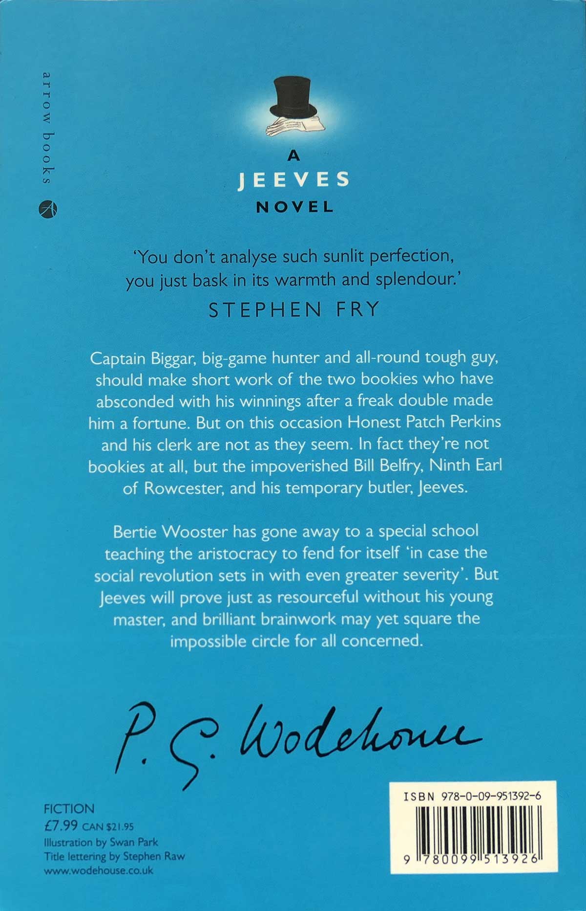 The only Jeeves story in which Bertie Wooster makes no appearance, Ring For Jeeves sees Jeeves on secondment as butler and general factotum to William Belfry, ninth Earl of Rowcester (pronounced Roaster). Despite his impressive title, Bill Belfry is broke, which may explain why he and Jeeves have been working as Silver Ring bookies, disguised in false moustaches and loud check suits. All goes well until the terrifying Captain Brabazon-Biggar, big-game hunter, two-fisted he-man and saloon-bar bore, lays successful bets on two outsiders, leaving the would-be bookies three thousand pounds down and on the run from their creditor. But now the incandescent Captain just happens to be the former flame of Rosalinda Spottsworth, a rich American widow to whom Bill is attempting to sell his crumbling stately home. This is the paperback edition in immaculate condition.