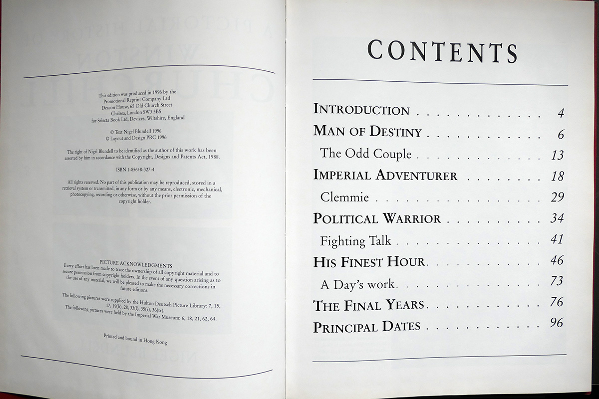 Nigel Blundell’s book about Winston Churchill is more of a coffee table book about the man than an in-depth biography. The photographs are excellent and of very high quality, and Blundell allows these to tell the story of the great statesman’s life, under thundering chapter headings like Man of Destiny, Political Warrior and Imperial Adventurer. This large-format hardback is the first edition in very good condition.