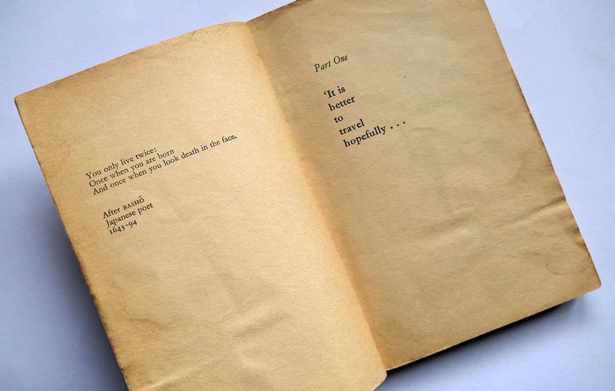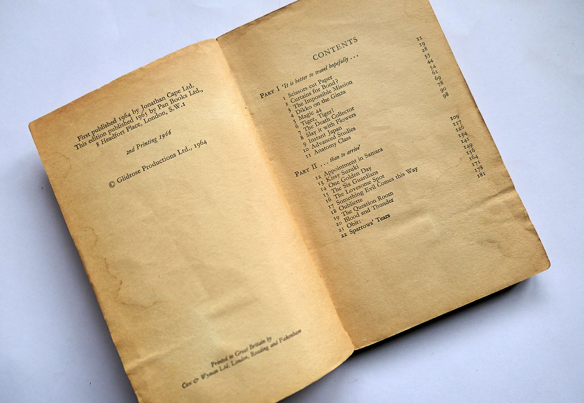 Pan paperback edition from 1966 of Ian Fleming’s final published novel, and the eleventh in the James Bond series. In 1959 Fleming had visited Japan as part of his research for his travel book Thrilling Cities, and found inspiration for You Only Live Twice there. The story opens with a washed-up 007 sent on a mission to Japan to assassinate Dr. Guntram Shatterhand. But when Bond discovers that this man is actually Ernst Stavro Blofeld, the mission becomes a revenge killing for the murder of his wife Tracy Bond by Blofeld, in On Her Majesty’s Secret Service. This paperback edition was first published in 1965; this is the second impression in fair condition.